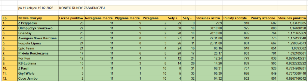 Za nami runda zasadnicza Powiatowej Amatorskiej Ligi Siatkówki Drużyn Mieszanych. Ostatnie dwa mecze były bardzo trudne i decydowały o ostatecznym układzie tabeli przed fazą play-off.