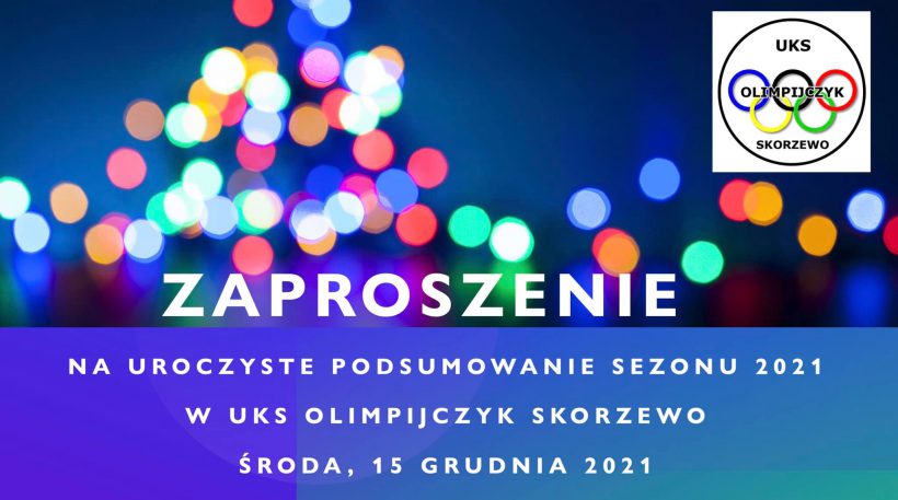 Serdecznie zapraszamy wszystkich członków UKS Olimpijczyk Skorzewo, zawodników, trenerów, rodziców, sponsorów i sympatyków naszego Klubu na uroczyste podsumowanie sezonu 2021, które odbędzie się 15 grudnia o godzinie 16:30 w Sali Wiejskiej w Skorzewie.